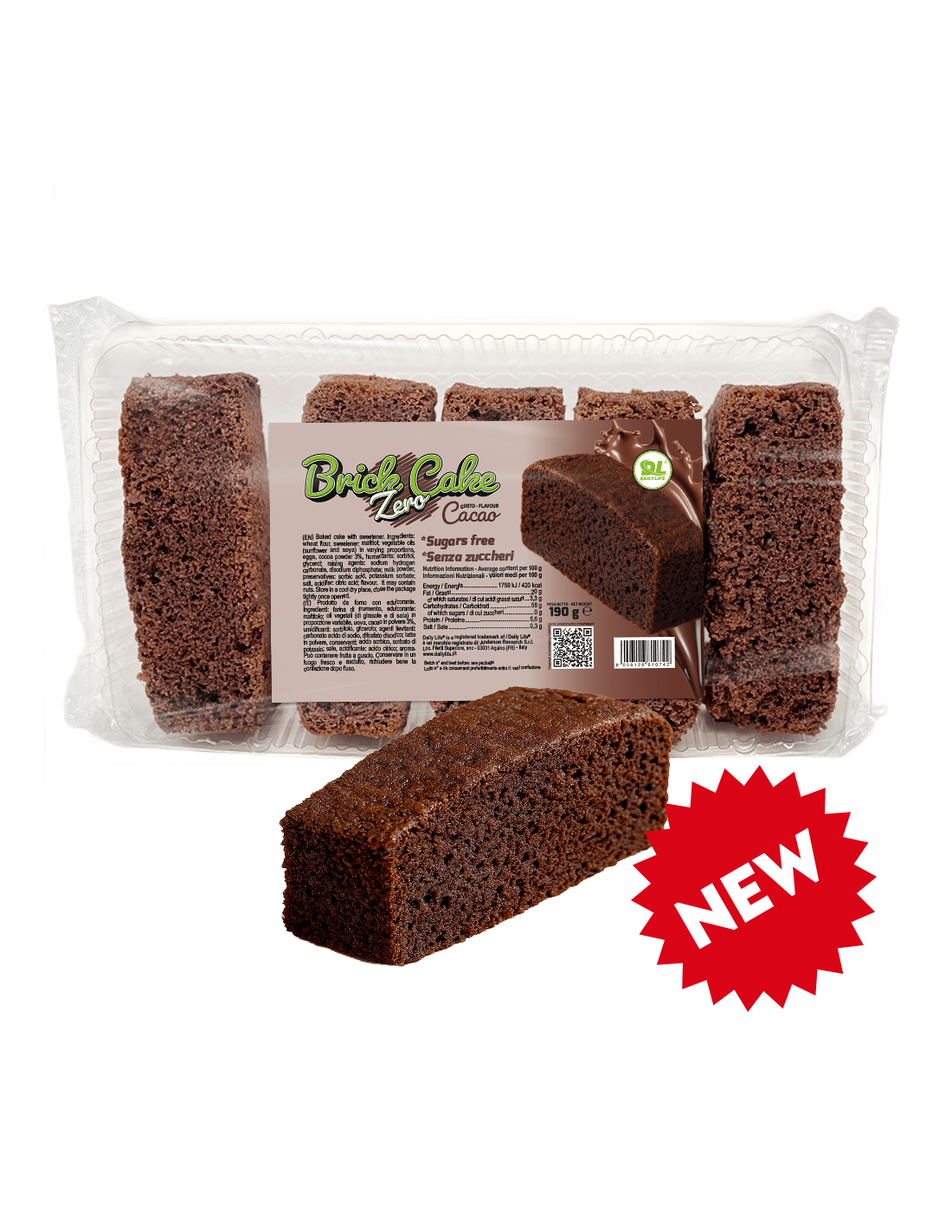 A colazione, come spuntino o semplicemente quando ne hai voglia, non rinunciare al gusto unico di questo buonissimo dolce con la sua soffice pasta dorata al gusto Yogurt. Brick Cake Zero ha 0 zuccheri Abbiamo totalmente sostituito il maltitolo al saccarosio che, a differenza di quest’ultimo, ha un basso indice glicemico, aiutando a mantenere stabili i livelli di glucosio nel sangue senza picchi glicemici ed insulinemici ed inoltre limita il contenuto calorico contenendo 2,4 kcal contro le 4 kcal per grammo dello zucchero.