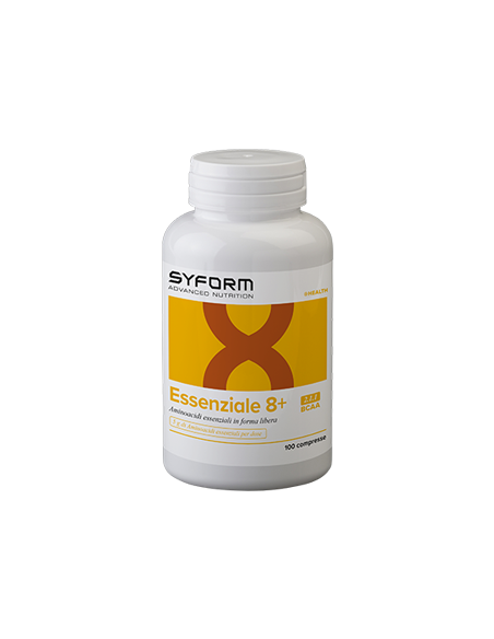 Essenziale 8+ è un integratore bilanciato di aminoacidi essenziali e semi-essenziali in forma libera, di qualità farmaceutica, immediatamente disponibili all’organismo, addizionati di Vitamina B6.